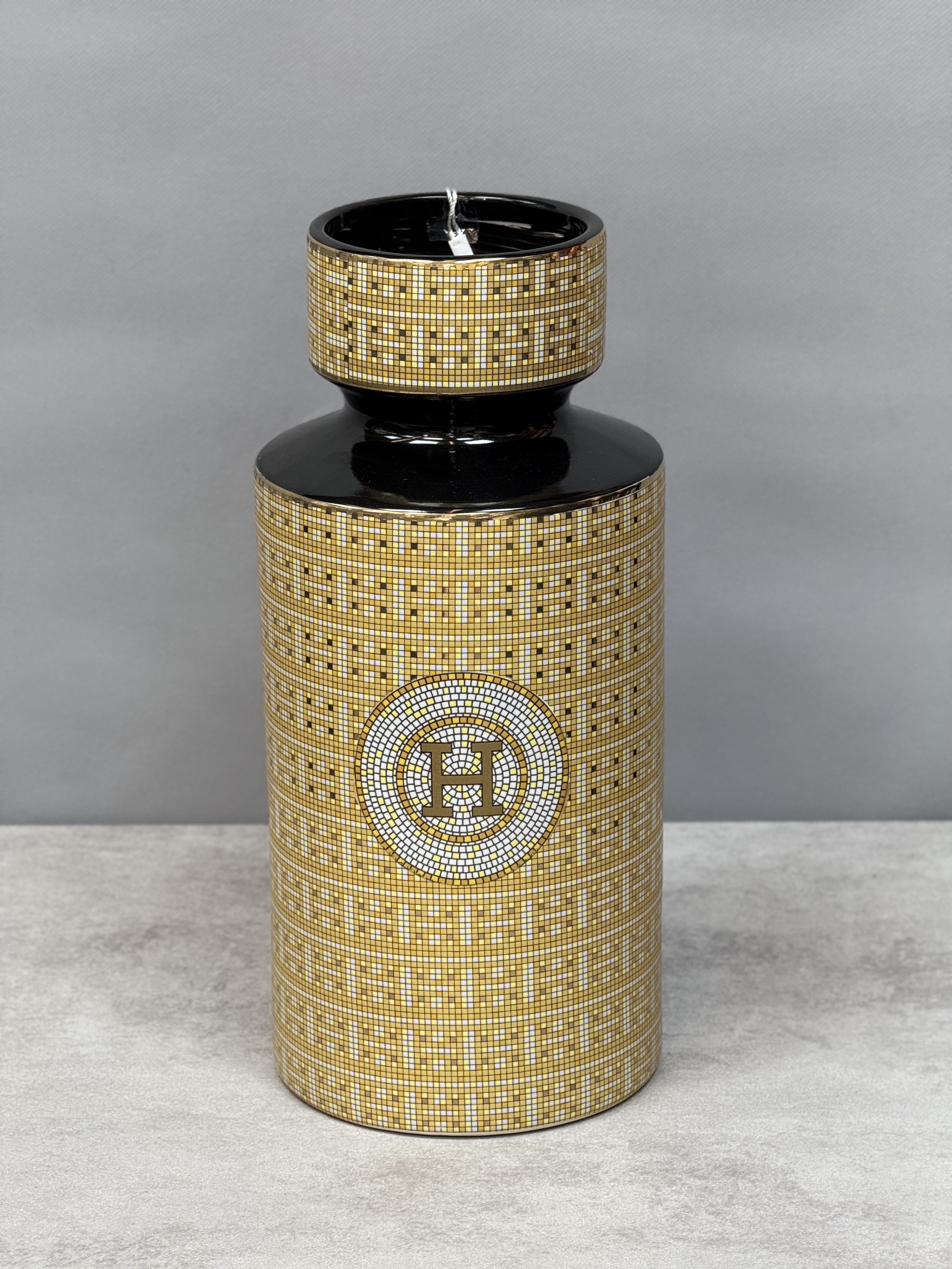 گلدان رومیزی طرح هرمس طلائی مشکی