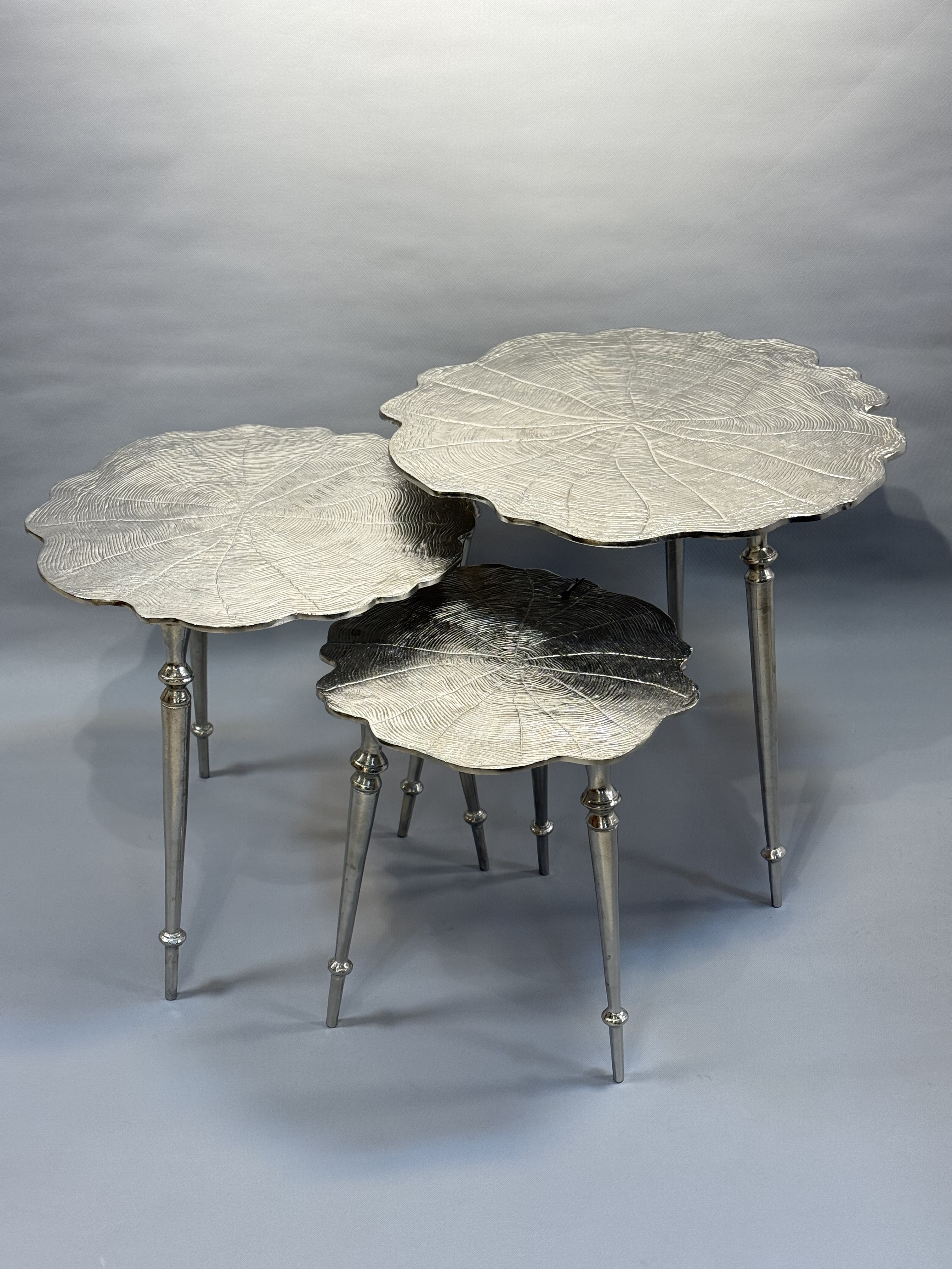 میز عسلی سه سایز طرح نیلوفر رنگ سیلور