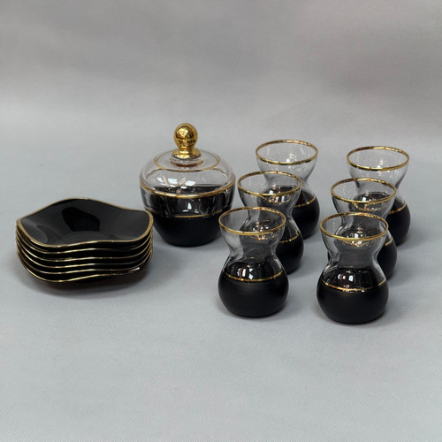 سرویس چایخوری پاشاباغچه رنگ مشکی طلایی به همراه قندان