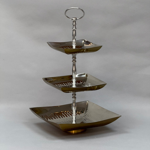 شیرینی خوری سه طبقه استیل چکشی دو رنگ