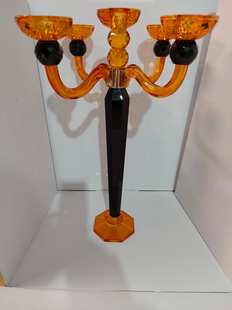 شمعدان کریستال وارداتی نارنجی مشکی