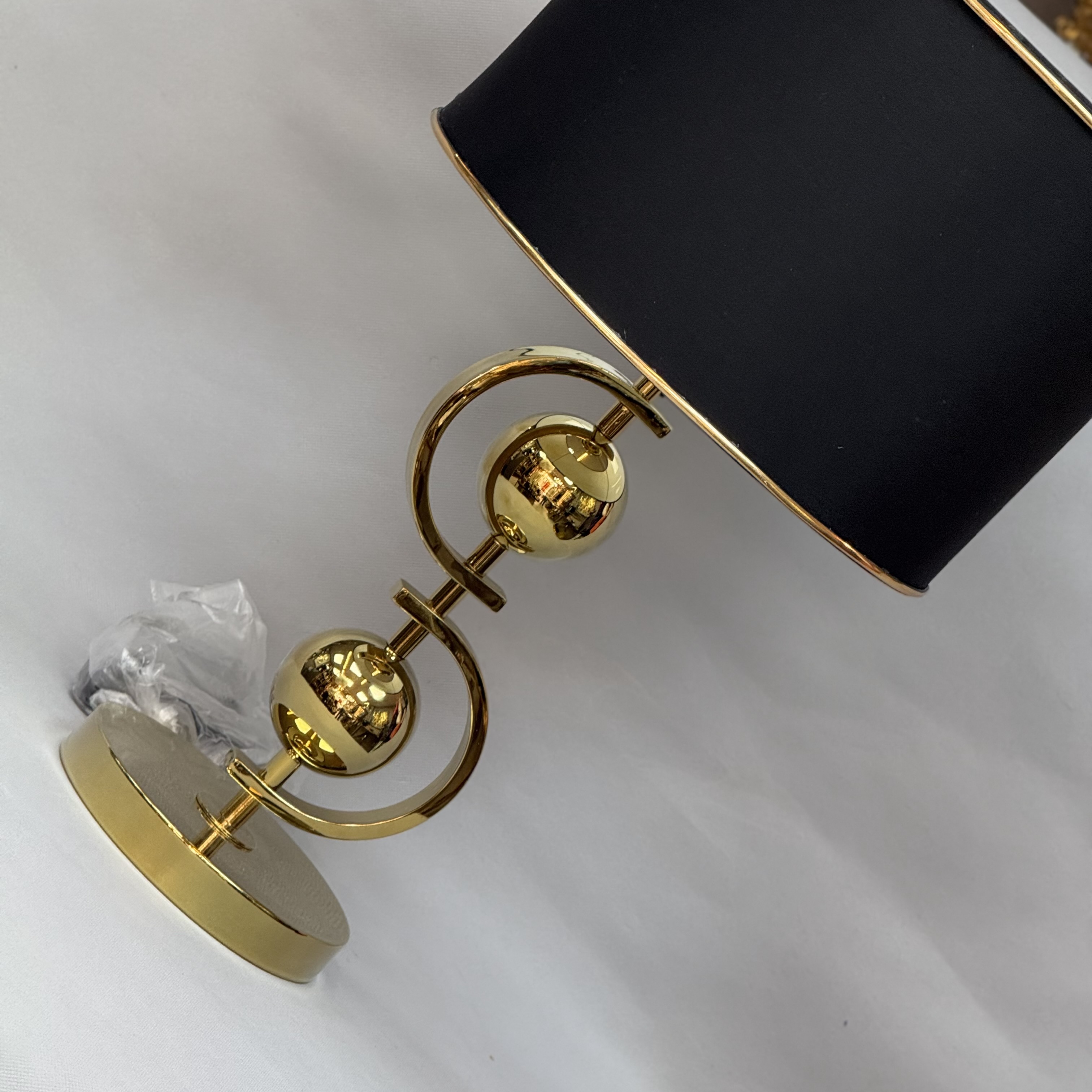 آباژور رومیزی دو گوی طلایی استیل با شید مشکی