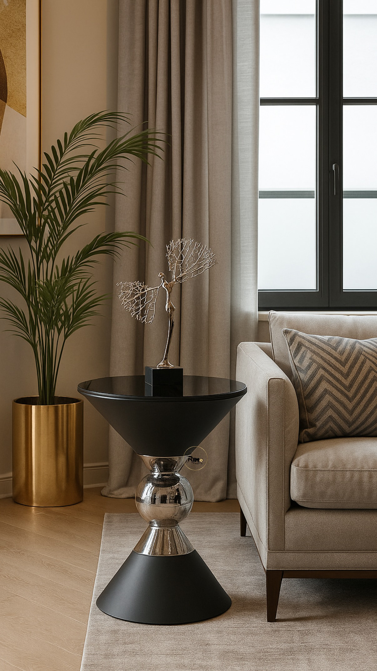 میز کنارسالنی طرح هرمی رنگ مشکی سیلور